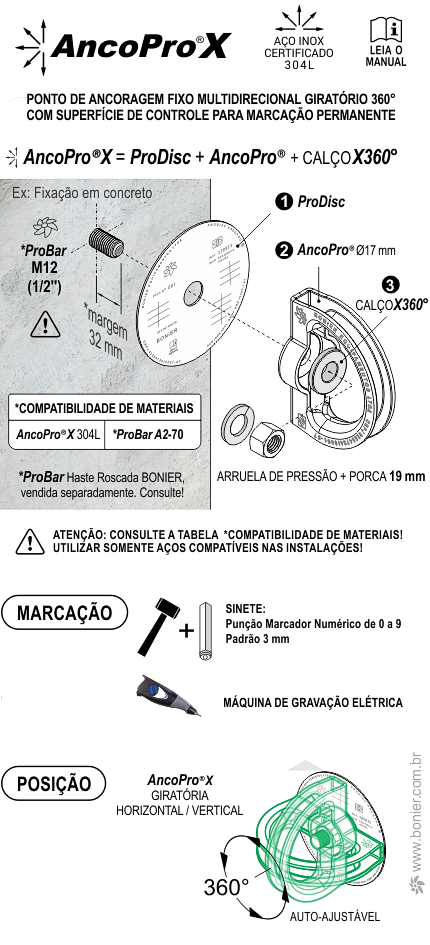 A AncoPro®X é um dispositivo de segurança completo de altíssima resistência mecânica e química. Com inovador sistema giratório para esforços multidirecionais e superfície de marcação permanente integrada, é equipamento indispensável onde o controle de inspeção anual e rastreamento individual de instalações são exigidos.