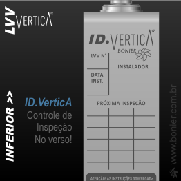 ID. LVV VerticA INFERIOR Integrado no corpo do tensor para identificação e controle da instalação obrigatórios, através das gravações com sinete 3 mm: Instalador, N° da Linha, Data da Instalação e próximas Inspeções definidas em projeto.