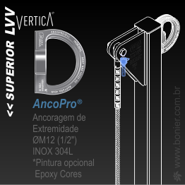 Ancoragem fixa de extremidade INOX 304L AncoPro® para alta resistência mecânica e química, possibilita pela grande abertura, ágil conexão do trabalhador durante o embarque e o desembarque seguro, enquanto não acoplado ao cabo.