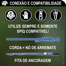 Conexão e Compatibilidade BONIER®PANDA A utilização de Cordas com nó de arremate e Fitas compatíveis em acordo com SPIQ (Sistemas de Proteção Individual Contra Quedas) é obrigatória na montagem do sistema e fundamental para a segurança de todos.