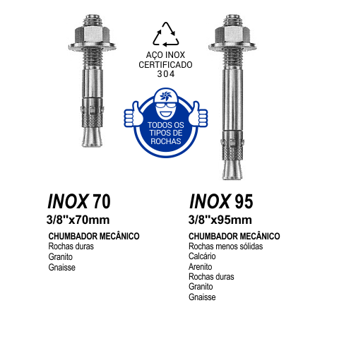 *AÇO GRAU A2-70 compatível com INOX 304L