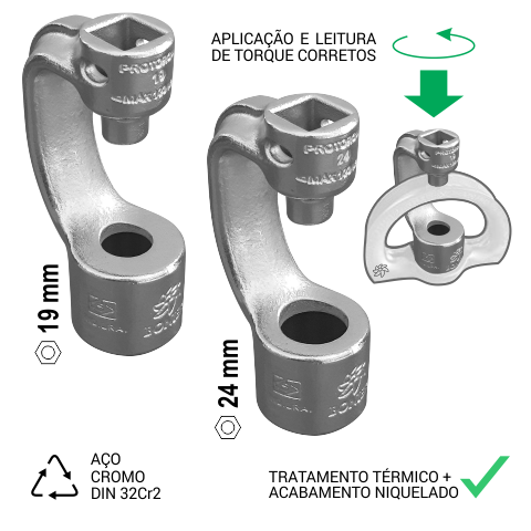 TORQUE ProBar: Para diferentes substratos, o torque recomendado garante que o aperto da peça seja suficiente para evitar fadiga e contribua para diminuir a carga de cisalhamento devido ao atrito entre a peça e a superfície.