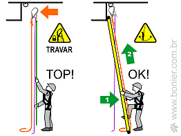 Em Duralumínio o TOP BONIER é indicado para acessar linhas de vida ou pontos de ancoragem a partir do chão, para que o trabalhador inicie a subida já estando seguro.A leveza do alumínio e abraçadeiras fortes, proporcionam movimentos mais precisos em manobras com pontos distantes, através dos extensores TOP6 (máx. 5,7 m) e TOP8 (máx. 8 m). Não usar na presença de rede elétrica!